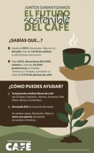 Starbucks México impulsa el crecimiento agrícola con la 11ª edición de “Todos Sembramos Café” Mundo Verde por Mercedes Nolasco - junio 23, 2025junio 23, 20250 Starbucks México lanza la 11ª edición de “Todos Sembramos Café”, uno de sus programas más emblemáticos. Desde su creación en 2014, la iniciativa ha transformado la vida de más de 20,000 caficultores en México a través de la renovación de cultivos, asesoría técnica, capacitación y acceso a prácticas agrícolas sostenibles que fortalecen la resiliencia de sus comunidades. Este año, “Todos Sembramos Café” tiene como objetivo recaudar fondos para donar 815,000 plantas de café resistentes a la roya a comunidades cafetaleras en Chiapas, Veracruz y Puebla, tres estados que en conjunto representan más del 75% de la producción total de café en México. “En 2025, celebramos cómo ‘Todos Sembramos Café’ ha pasado de ser una respuesta de emergencia a la roya del café a convertirse en un movimiento de transformación a largo plazo”, señaló Sarai Jiménez, directora de Reputación y ESG en Starbucks México. “A través de esta causa, generamos un impacto social duradero, fortaleciendo la resiliencia rural y mejorando la productividad de las familias cafetaleras.” Impacto más allá de la donación de cafetos A lo largo de 11 años, Starbucks México ha donado más de 4.8 millones de plantas de café a través del programa y espera alcanzar un total de 5.6 millones de plantas donadas en 2025. Pero el impacto de la iniciativa va mucho más allá de la entrega de plantas. Sin embargo, su impacto va mucho más allá. Con el trabajo conjunto con el Farmer Support Center de Starbucks en lugares como Chiapas, se han introducido prácticas de agricultura regenerativa, se han instalado estaciones meteorológicas que optimizan la toma de decisiones agrícolas, y se han distribuido ecomills que permiten reducir hasta un 90% del consumo de agua durante el proceso de beneficio húmedo del café. Aliados como Fundación Alsea y la Universidad Autónoma Chapingo han apoyado este esfuerzo con innovaciones en análisis de suelo, capacitación técnica y acceso a servicios de salud para mujeres caficultoras y sus familias. Cada fase del programa ha sido co-creada con empatía, respeto y una escucha profunda de las realidades de la vida en el campo. ¿Cómo sumarse y ser parte de esta iniciativa? Del 23 de junio al 4 de agosto, por cada bolsa de café en grano entero comprada en tienda o a través de plataformas digitales, Starbucks México donará una planta de café resistente a la roya. Los clientes también pueden realizar una donación voluntaria de $10 MXN al momento de pagar o a través de la app Starbucks Rewards®. Los cafés participantes incluyen Starbucks® Chiapas, Espresso Roast, Verona, Sumatra, Pike Place, Kenya y Colombia — todos elaborados con granos arábica de alta calidad y origen ético. En Starbucks México se cree en el poder de la conexión humana en cada taza, en cada conversación y en cada comunidad. Nuestro amor compartido por el café es solo el comienzo. También asumimos la responsabilidad de cuidar a las personas detrás de cada grano, desde el origen hasta la taza, y de trabajar por un impacto positivo en las personas y el planeta. Compartir en Facebook Compartir Compartir en TwitterTweet Compartir en Pinterest Compartir Compartir en Linkedin Compartir Compartir en Digg Compartir