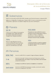 En palabras de Encarna Piñero, CEO de Grupo Piñero, “2024 ha sido un año clave en la consolidación de nuestra estrategia sostenible. Con la puesta en marcha de la hoja de ruta ESG 2025-2028, avances en descarbonización, circularidad y en el apoyo a comunidades locales, seguimos demostrando que el turismo puede y debe ser un motor de desarrollo regenerativo.”